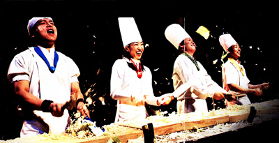 撮影禁止なのでパンフレットの映像を借用しました。台所にある俎板、包丁、バケツ、箒、などを利用して音楽をするものです。こうした道具類には音階がありませんので叩くリズムが主です。パントマイムを組み合わせたコミックな演出で、1時間半はアッと言う間に過ぎました。